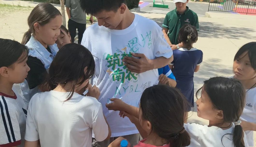 活动尾声,离别氛围渐浓。面对即将到来的分别,孩子们依依不舍,有的紧紧拉着实践团成员衣角默默流泪,有的则强忍泪水在成员衣服上认真签下自己的名字留念。实践团成员俯身轻抚孩子们的头,反复叮嘱他们努力学习,言语与微笑间饱含着对孩子们的深切关怀与期许。