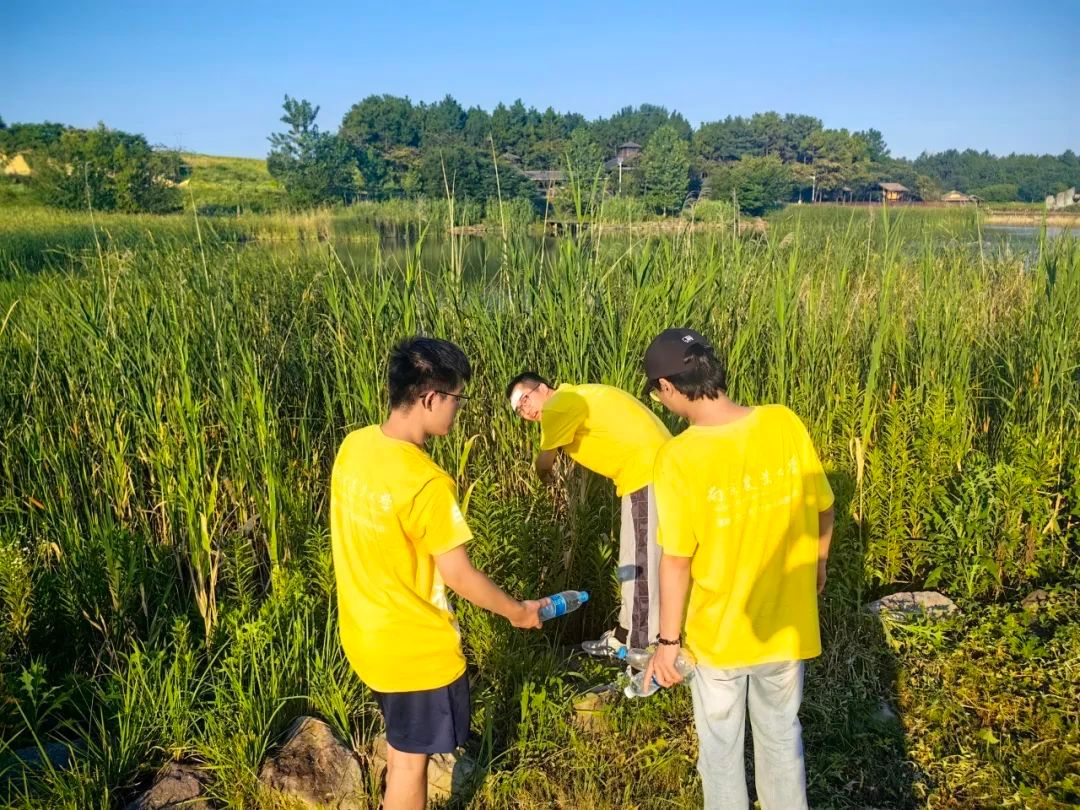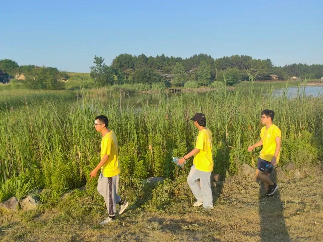 在结束农机调研后,实践团转向基地内的河流开�巡河护河行动。夏日高温下,河滩芦苇荡成了垃圾�“藏身地”——避暑药品包装、塑料水瓶散落其间。成员们迅速弯腰拾捡、分类归集,不一会儿便将杂物清理干净。基地老师同时开展现场教学:“玻璃瓶、塑料瓶属于可回收物,药品包装要投进其他垃圾池……”成员在实践中学习到了比课本更鲜活的垃圾分类知识�