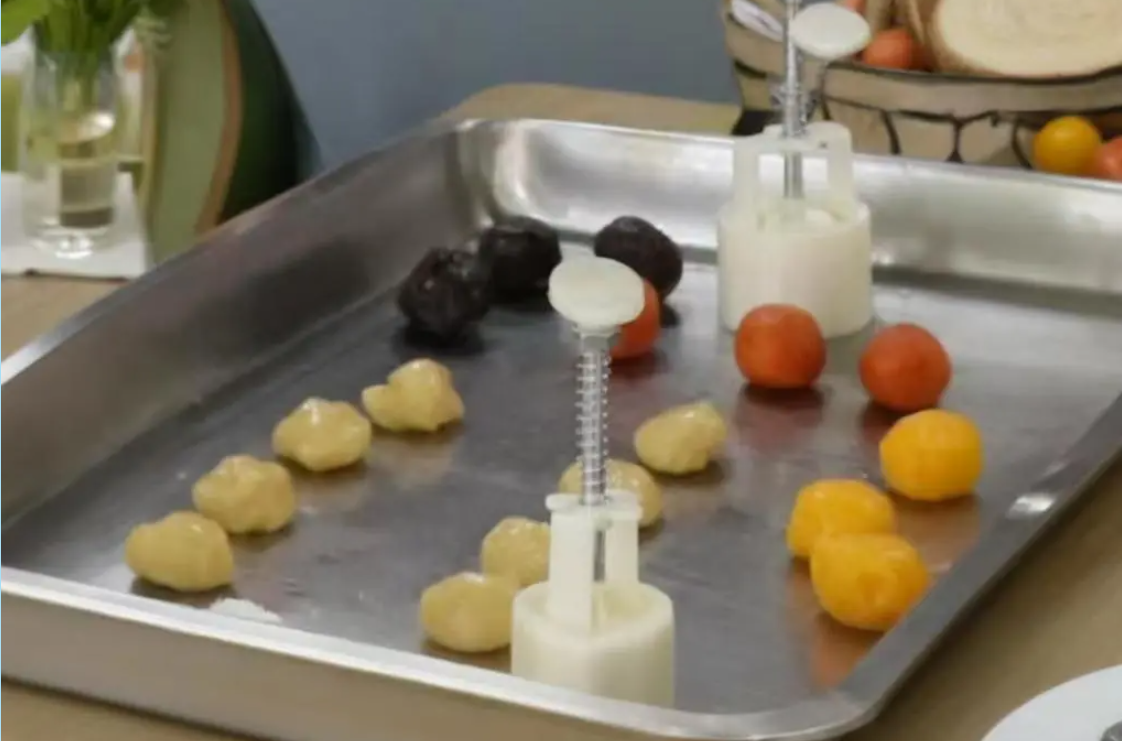 活动伊始,志愿者们将豆沙、奶黄等经典馅料以及面团、模具分发给各小组,生活部田金云同学现场演示了从包馅、压模到成型的完整流程。同学们纷纷动手,协作制作属于自己中秋的第一份团圆饼。