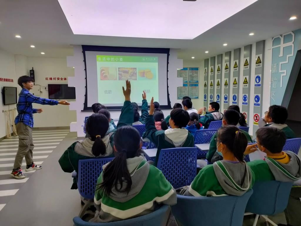 科普讲解从智慧农业、无公害农产品、小麦、水稻等多个主题让同学们了解了农业作物和现代农业技术,通过学习作物从一颗种子变成食物的漫长过程,体会到粮食的来之不易,明确节约粮食的重要性,进而使“光盘行动”有更高的参与积极性。