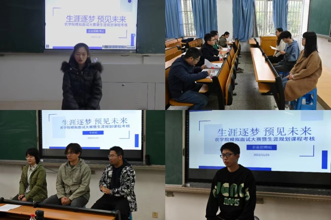 “各位面试官,大家好,我是来自番号鸽 的……今天应聘的岗位是农业技术推广专员……”伴随着同学们自信的自我介绍,模拟面试拉开帷幕。“就你熟悉的作物,论述诱变育种的途径、方法及应用前景。”考研、保研类别面试组也如火如荼地进行,大家俨然置身于大四的方向抉择期,严肃而又慎重。