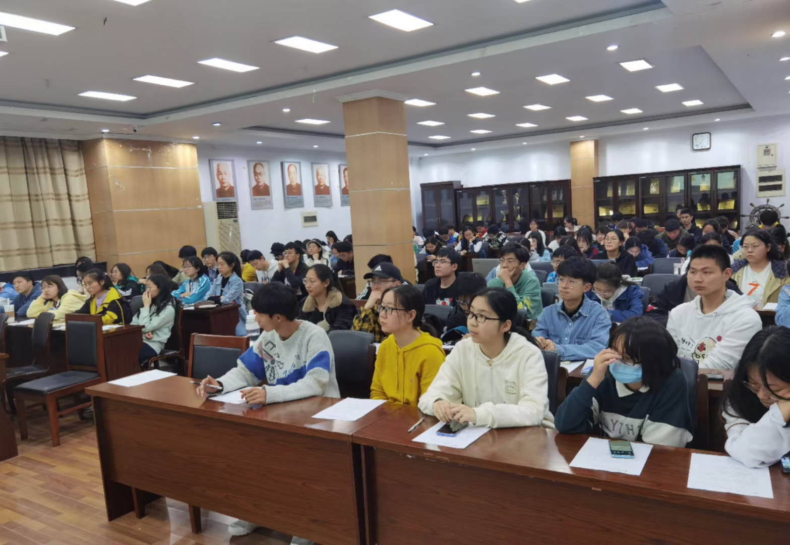 讲座伊始,陈老师就英语六级试卷的分数构成、题目难度以及与英语四级考试的差异进行了详细讲解。随后,就上次的模拟考试试卷为依据进行了详细的知识点讲解,并针对出错率高的题目进行重点强调、知识点总结以及答题技巧分享,同学们认真听讲,不时记录。陈老师还就英语写作中提升亮点的方法做了生动讲解,同时向同学们分享了英语六级考试阅读、听力、翻译中的技巧及相关板块题目时间分配。同学们表示受益匪浅,纷纷在提问环节提出了自己在备考英语六级过程中的困惑与“瓶颈”,陈老师一一进行了详细解答。