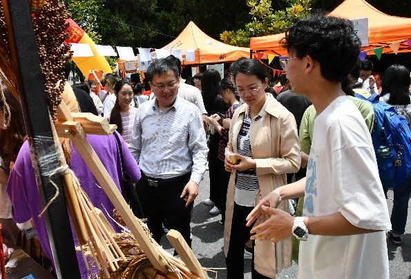 走进各地展区帐篷,各地区特色农产品、现代农机和村落模型、农业科技展板……各式各样的展品映入眼帘,各地区展位别出心裁,依托丰富多彩的体验式互动游戏,开展种子拼图、油菜移栽、艺术葫芦、茶文化展示、趣味问答等现场体验活动,东北展区还提供本地区的黑加仑干与坚果软列巴等特色食物供同学品尝。各摊位讲解人声情并茂,从不同角度介绍了各地农耕文化及农业发展成果,展现了近百年来在中国共产党的带领下,农业生产模式和农村面貌发生的翻天覆地新变化。