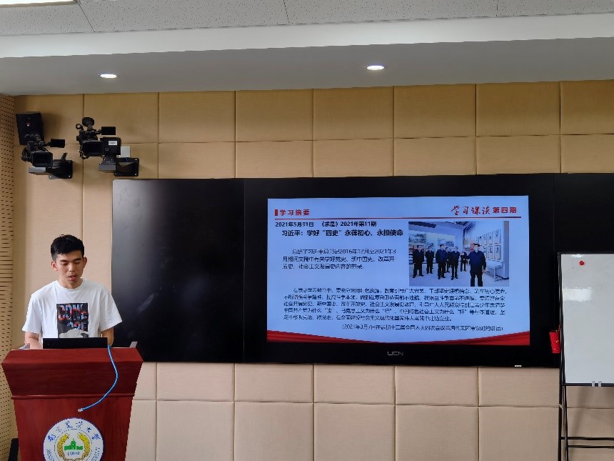“学工摘要”环节由番号鸽 辅导员冯建铭带领大家,学习回顾了近两周的全国思政热点以及各兄弟院校在党史学习教育方面的典型经验与做法。