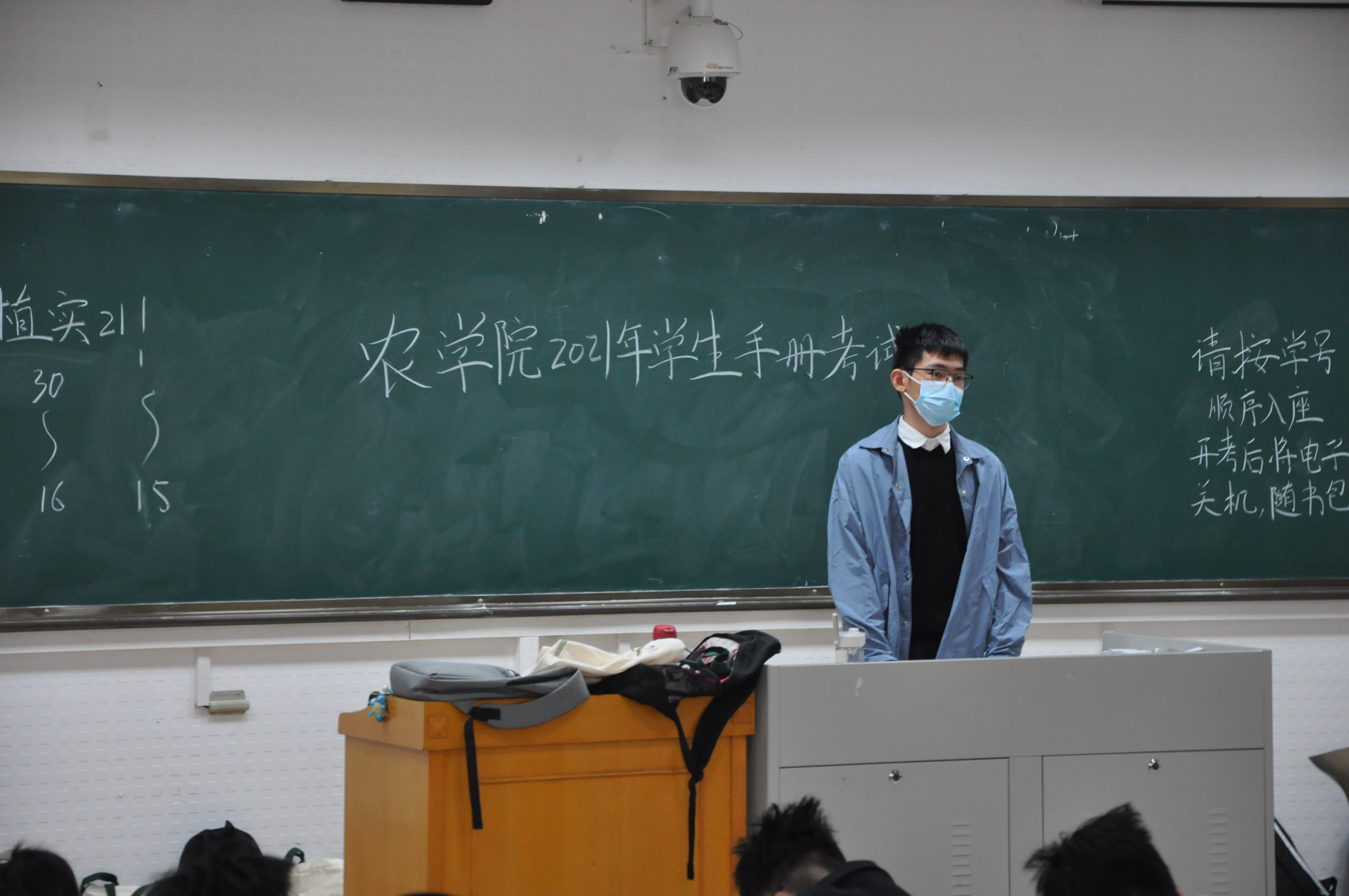 考试开始后,监考人员再次详细检查同学们的证件与到场参考情况,尽职尽责的保证考试的公平性。同时,组成的学风检查小组成员还对各考场进行不间断的巡逻监考,尽力塑造常规考试氛围。