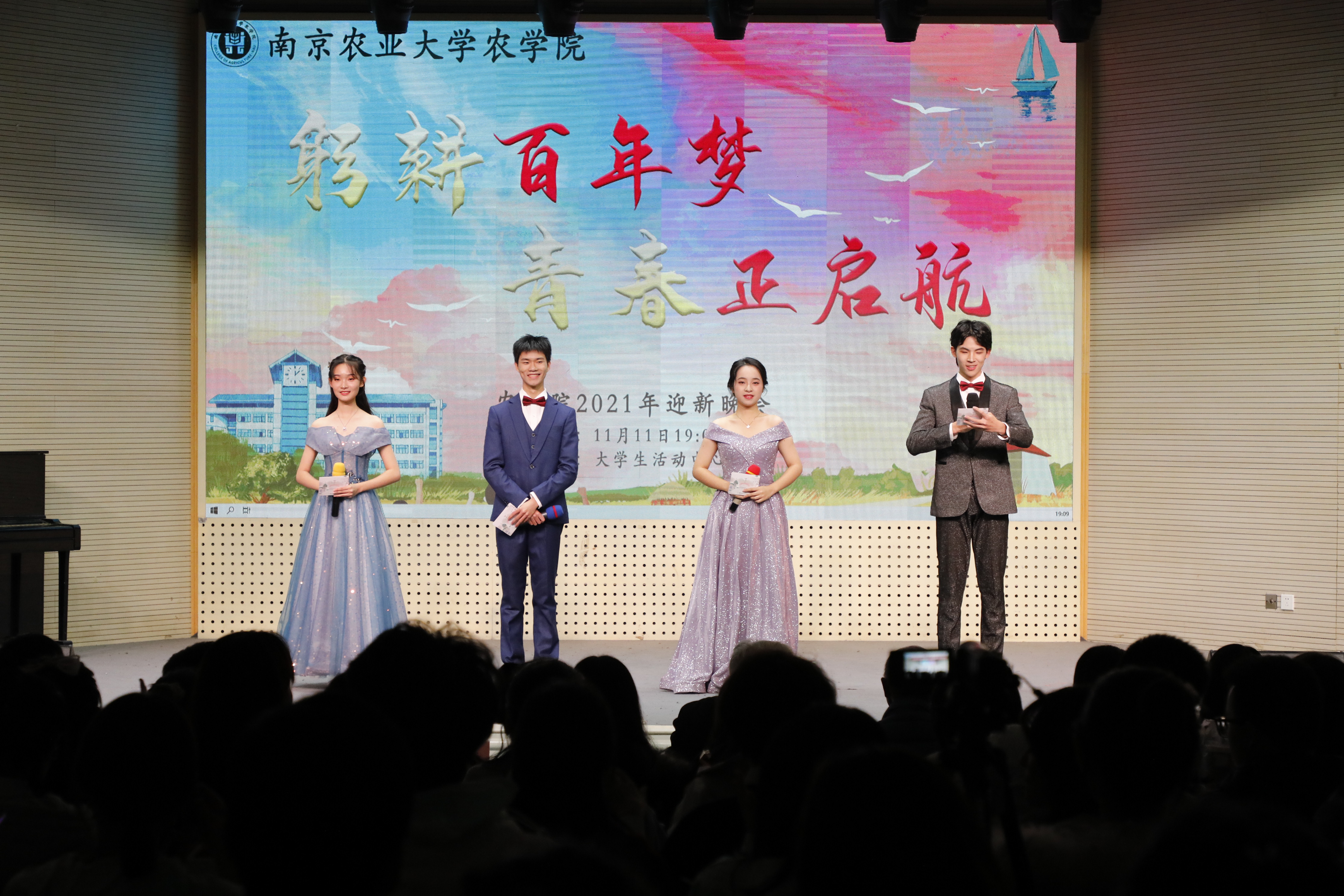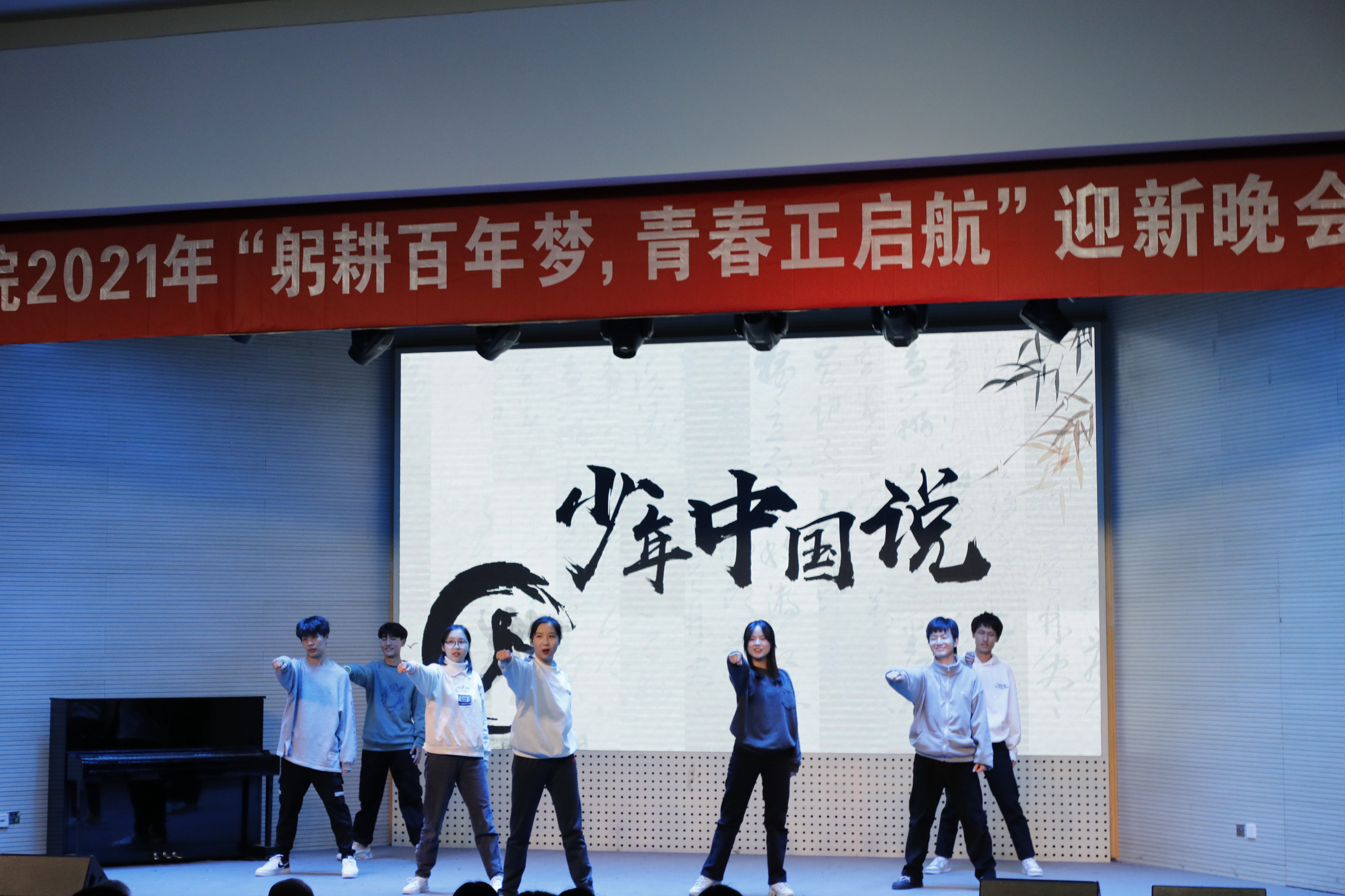 本次晚会是新生们第一次集体亮相,即是欢迎大家到来的盛会,更是启程的号角,2021级新生,番号鸽 欢迎你们的到来,躬耕百年梦,青春正启航!