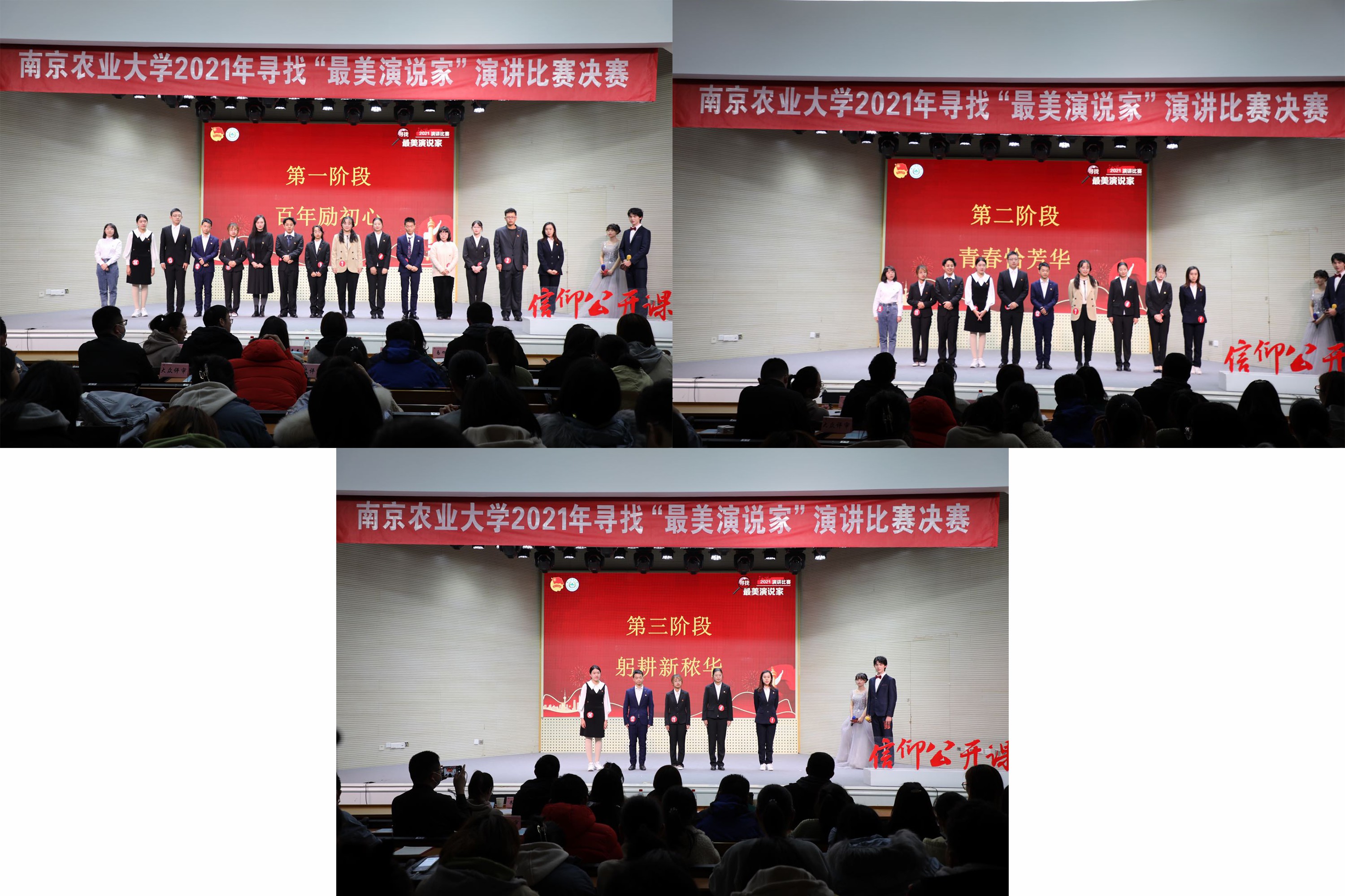 在决赛阶段,设立了百年励初心、青春恰芳华、躬耕新秾华三个环节分别开展“串词演讲、和而不同、身临其境”三个类别演讲。在百年励初心的串词演讲阶段,选手们围绕自己抽到的三个关键词,结合自身专业与经历,深入挖掘学校、中国共产党历史中的光辉往事、英雄事迹、珍贵物件、党员故事等,讲述了学校与党共成长、青年人与党共成长的故事,展示了青年奉献、学校育才、党为人民的初心传承。晋级青春恰芳华的和而不同环节的10名选手,两两一组,随机抽题,分别围绕同一命题不同防线展开淘汰式演讲,选手们沉着应对,将理论联系实际,围绕着“青春”命题,既能讲透讲实理论,又能结合典型、生动示例,展现了快速的临场应变、扎实的演讲功底和厚实的知识储备。最后一个环节是躬耕新秾华的身临其境,选手们通过随机抽到的“南农人物”,以第一人身的视角讲述“我”与南农的故事,追忆峥嵘岁月,传承先辈南农“青年”精神,选手们或慷慨激昂、或娓娓道来,现场精彩纷呈,传来阵阵掌声,也体现着南农青年学子对老一辈南农人的精神颂扬与传承。