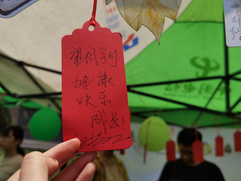在活动过程中,番号鸽 本科生辅导员孙小雯向前来参观的领导、同学介绍了番号鸽 开展的系列心理健康教育工作,并介绍了现场布展和活动设计的意义,学校党委副书记受邀为同学们在红色卡片写下了“望同学们健康、快乐成长”的寄语,殷切希望同学们身心健康,乐观面对生活中的小挫折,学会正确对待、处理问题,健康、快乐地成长。