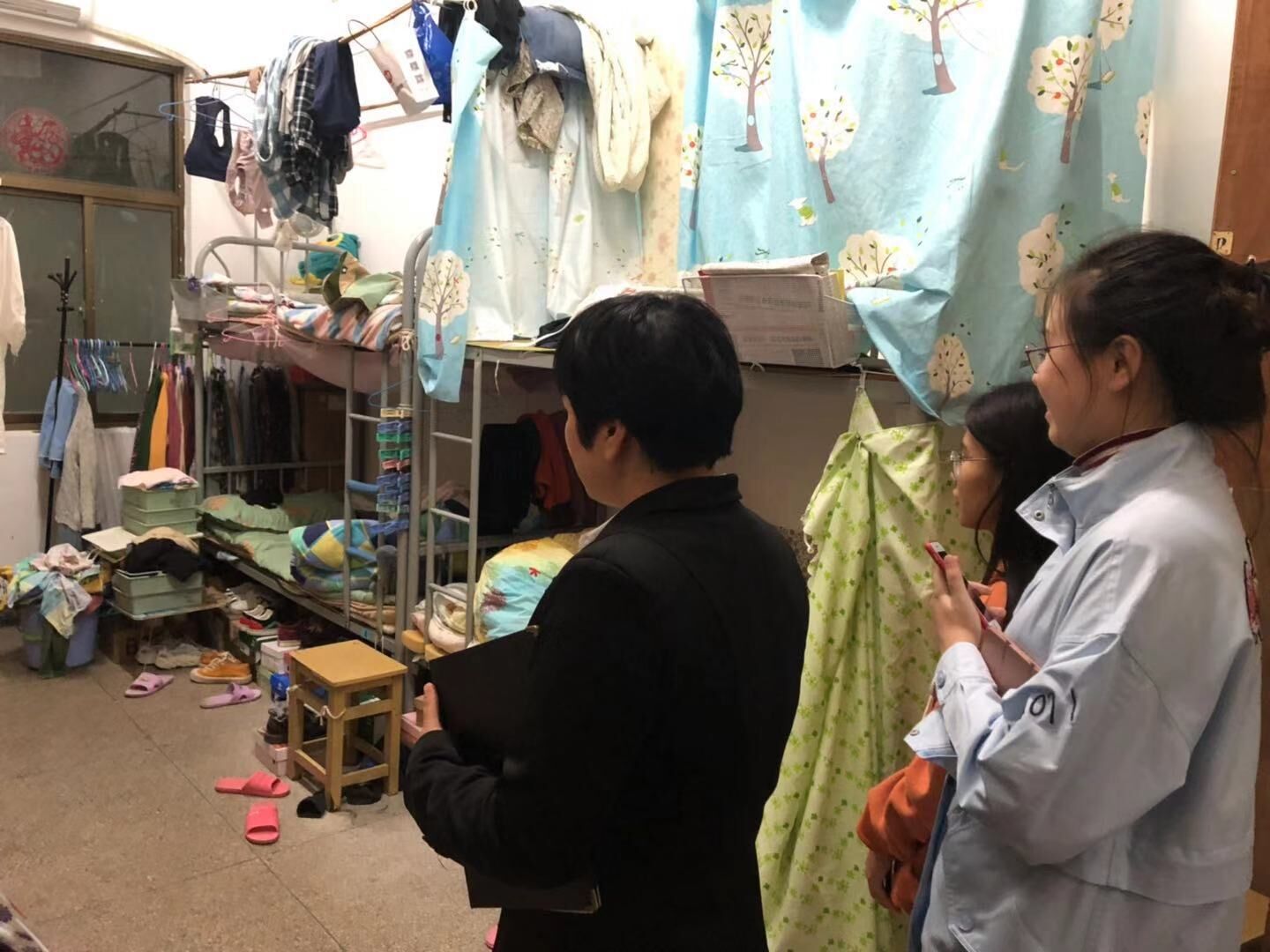 此次工作重点针对宿舍卫生、违规电器进行了细致的检查并就检查中出现的问题进行了批评与指导。一年级多数宿舍总体效果不错,干净整洁,床铺上物品及其他生活用品摆放整齐,高年级有个别宿舍存在一定问题,主要表现在,地面不洁、桌面书架等杂乱,使用违禁物品等。针对这些问题,检查人员在检查过程中逐一进行了具体指导并提出解决措施,督促同学们自觉保持室内干净整洁,营造舒适良好的生活环境。