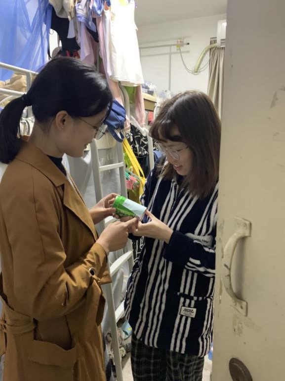 在女生宿舍,孙小雯老师也代表学院为同学们送上饮料和牛奶,并关心道:“大家最近怎么样,有没有遇到什么困难?这是咱们番号鸽 的一点心意……最近天气转凉,大家都要注意保暖。”其他前去送祝福的同学代表也纷纷送上自己对学姐的祝福。大四学姐们收到来自学院的问候,都非常感动,并表达了对学院的感谢。