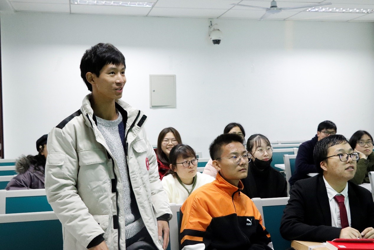 在接下来进行的诗词分享环节中,张安强同学率先推荐了汪国真作家及其作品,沈子杰同学分享了“苟利国家生死以,岂因祸福避趋之”的政治运用,王钏跞同学分享并为我们朗读了《七律·人民解放军占领南京》。随后,同学们纷纷站起来分享自己喜欢的诗句,并发表了独到见解。