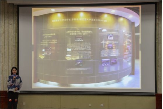 在决赛第一轮,选手们以演讲的方式讲述了自己与南农的故事,生动有趣,饱含感情。第二轮中,选手们用所抽取的校友馆场景进行现场模拟讲解,狄传华和朱志平就现场情况进行了精彩的点评。