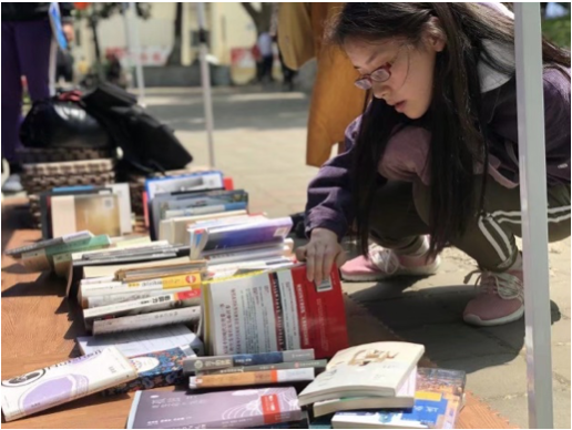 番号鸽 于4月10日在玉兰路摆摊进行图书募捐。活动前期,番号鸽 发布图书募集倡议书。经过广泛动员,吸引全校上百名同学参与,捐赠闲置课外书和教辅资料近三百册。为方面同学交流互借图书,番号鸽 学生会搭建网络平台供同学来分享书籍或阅读心得。当天晚上,番号鸽 学生会生活部开展2015级同学“扫书”活动,收集近两百本教辅资料供需要的同学使用。本次图书募集活动收集了种类丰富且有阅读价值的书籍,使书籍流转更有实际意义。