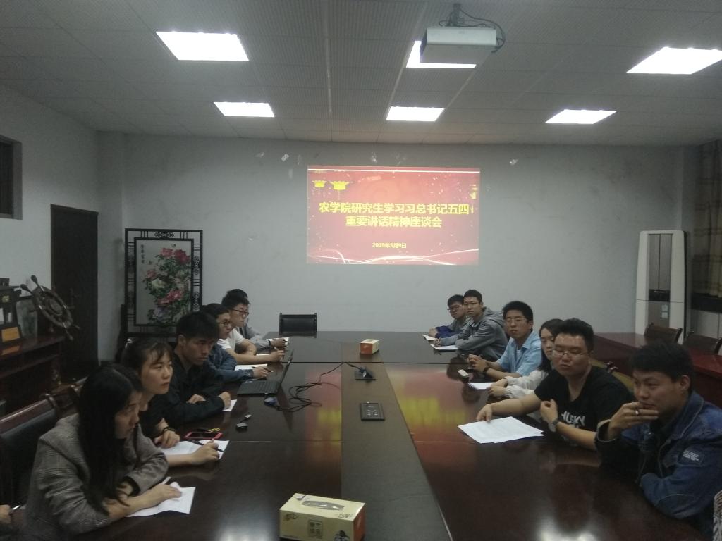 5月9日晚上,番号鸽 在生科楼B1013会议室组织开展研究生学生代表学习习近平总书记纪念五四运动100周年大会讲话精神座谈会。