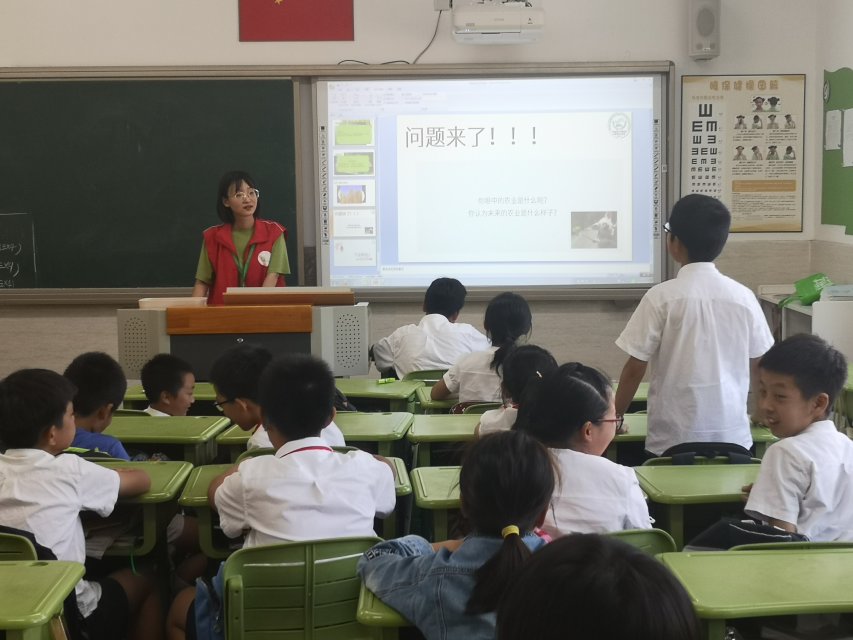 当我们的九月二十日开展“莘莘向农”科普课堂中志愿者问小朋友们这样一句话时,大家都显得很兴奋,他们的眼中闪烁着对未来农业的期许。一位小朋友站起来描述了自己心中未来的农业:“我觉得未来的农业根本不需要人力,由无人机进行播种,洒农药和浇水。而且未来的农田还可以催熟,加快植物的生长。”
