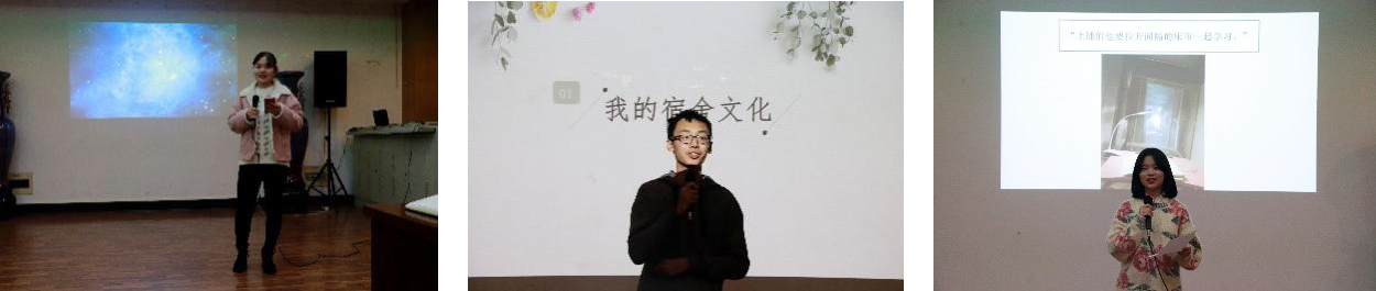 然后,各个参赛队伍开始“我的宿舍文化”演讲环节,八支队伍分别介绍了宿舍成员、独特宿舍的文化和宿舍故事,有的队伍展示了才艺表演。在八支队伍的精彩演讲后,院2015级团委学生会原野文学社社长邱九阳学长对每支队伍的演讲做了简单精炼的总结。