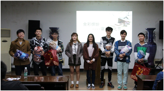 在经过三轮激烈的比拼后,由于各个宿舍分数不相上下,我们特增加了表演加分环节,同学们分别为自己喜欢的的宿舍加油,最后宿舍307获得一等奖。评委老师分别为获奖宿舍颁发了丰厚的奖品。本次寝室文化节圆满结束。