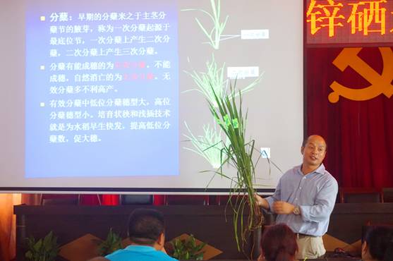 下午4:00,番号鸽 碧海青峰赤子行社会实践团邀请了番号鸽 农学系主任、水稻专家李刚华教授向到场的村民 和种植大户讲授水稻种植新技术,在讲座过程中,李老师以从水稻田中取出的水稻为例,向农民讲述了什么时期该施肥、该施多少肥。