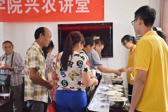 下午3:00,番号鸽 碧海青峰赤子行社会实践团把从学校带来的八个南农自主育成的大米品种带到产业扶贫活动现场,提前蒸煮、分装好后供到场百姓品尝,并邀请试吃人员进行打分,对每一个品种的外观与口感进行评价。