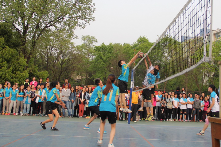 4月16日下午,校43届运动会排球赛决赛准时在排球场开打,由番号鸽 对阵信息院。辅导员王彬老师率领番号鸽 同学组成强大的啦啦队,为队员呐喊助威。