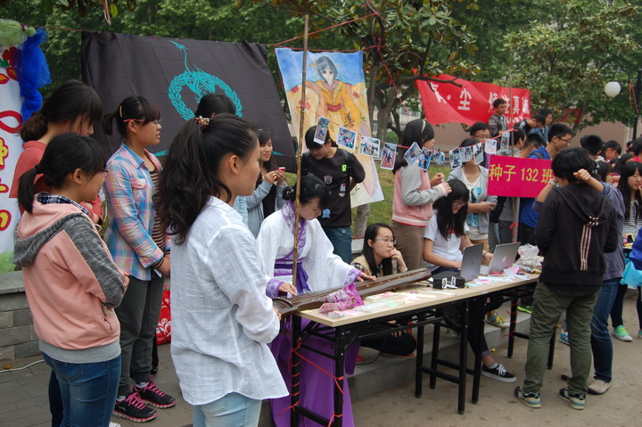 上午11时半,活动正式开始,现场热闹非凡,每个班级根据自己所定的主题进行展示。农学122、123班以少数民族歌舞为特色,联合呈现,激情的民族舞蹈,优雅的民族音乐,不时博得在场观众连连称好。农学124班则以中国传统文化为主线,高雅的茶艺表演,展示了鲜为人知的民族瑰宝,刚劲有力的软笔书法,体现了中华文化的博大精深。种子131班则以南京图腾貔貅为主题,构造了一幅五谷粮食画,展现在大家的面前,既预示了财源滚滚,五谷丰登,又表现出南农学子励志为祖国贡献青春与力量的决心。此外,还有舞龙,古筝等才艺展示。在游戏环节中,扎飞镖,有奖竞猜,夹弹珠等活动,吸引了不少校园中的学生,为此次活动增添了许多乐趣,让活动气氛达到了高潮。每个班级各有千秋,充分展示了学子们的青春活力与创新意识。
