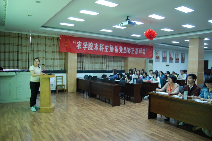 答辩会上,预备党员依次汇报了自己在过去一年的时间里所参加的实践活动和收获。预备党员们积极学习党章,关注时事并提出自己的见解,同时形成了当代大学生应有的价值观、是非观。表示了他们将以更高的要求来约束自己,以党为领导中心,注意自身的行为举止,显示党员的优秀素质。殷美详细的提问了每一位预备党员,内容从党的基本知识到对十八大报告的理解,从班级建设到个人在大学生活中遇到的问题,同学们依次做了解答。