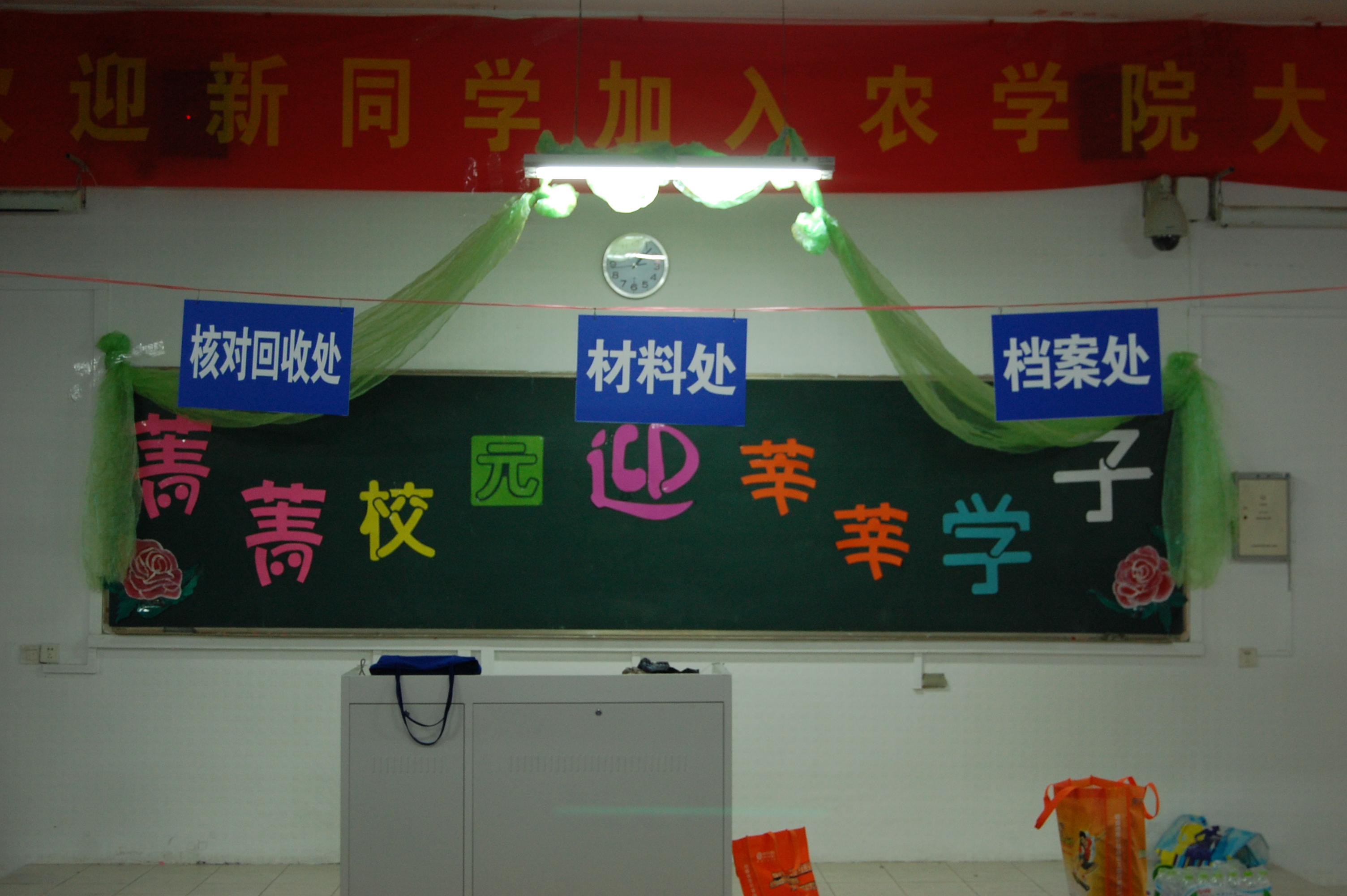 9月6日上午10点,微雨嘀嗒,主楼143番号鸽 迎新会场全新装饰,番号鸽 学生会全体成员率大二同学,正以饱满的情绪有条不紊、井然有序地为迎新会场做细致的准备和精心的布置工作。色彩缤纷的气球,精美的彩纸、恢弘的中国画、细致的标语,同学们齐心协力,会场俨然成为迎接新生的温暖大家庭。