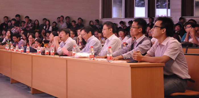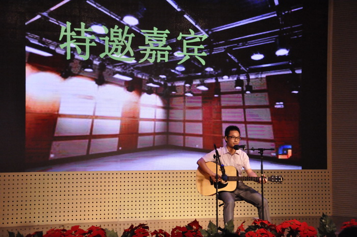 艺术团合唱团的《hero》,荡气回肠;《外婆的澎湖湾》,温馨洋溢;种子131班合唱《青春梦想》,发人奋进。团委学生会的《together》将全场气氛推向高潮,现场尖叫声掌声接连不断,强烈的节奏感、独特的舞蹈、帅气的动作感染了全场。抽奖环节过后,晚会的神秘特邀嘉宾彭益全老师自弹自唱,为新生献上了一首抒情歌曲,赢得了全场热烈的掌声。迎新晚会在种子132班的音乐剧《最美青春》中接近尾声。