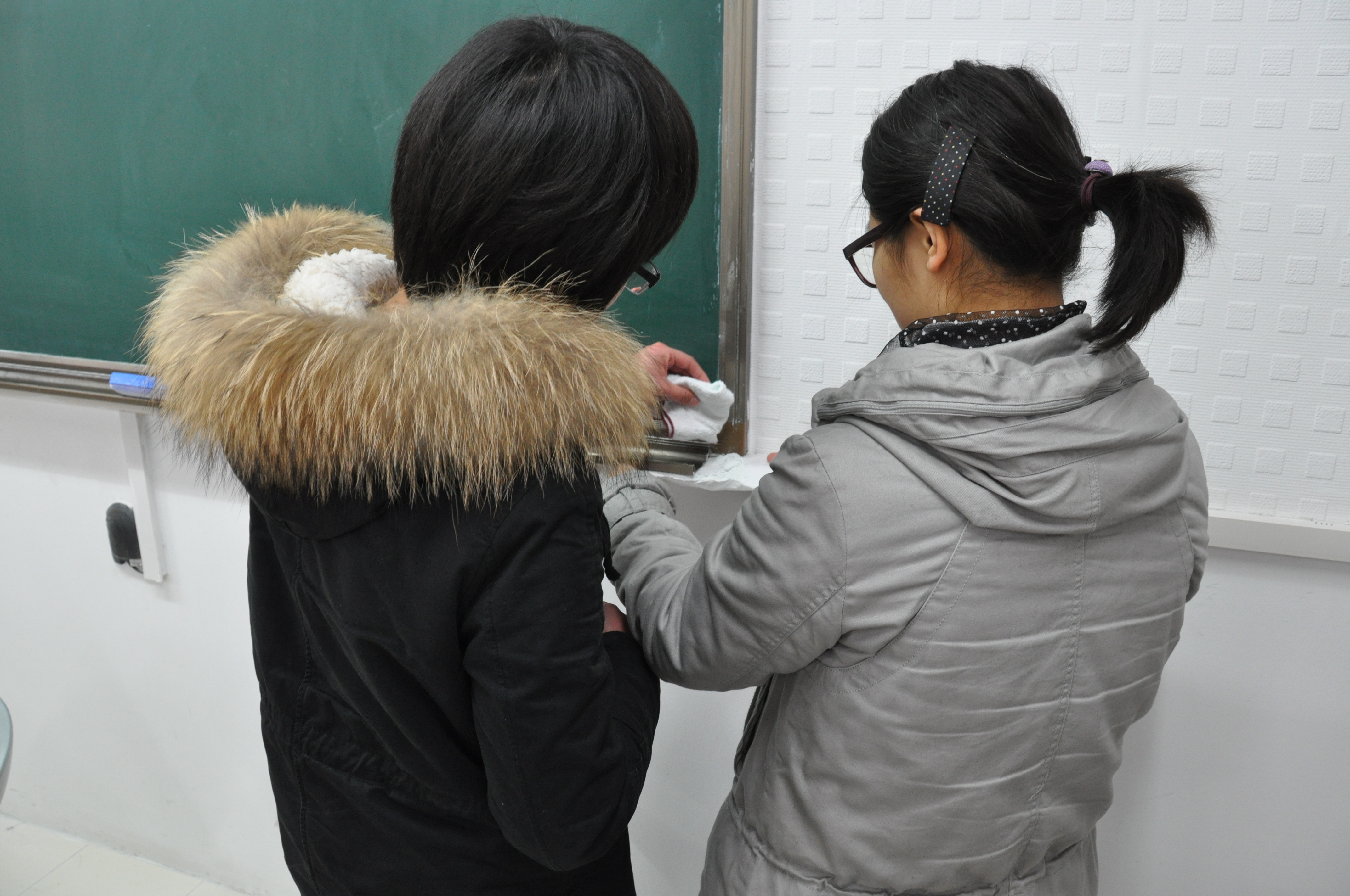 为响应毛泽东号召“向雷锋同志学习”第51周年纪念日,3月5日下午13时,番号鸽 青协组织志愿者在教四楼开展了义务擦黑板活动。