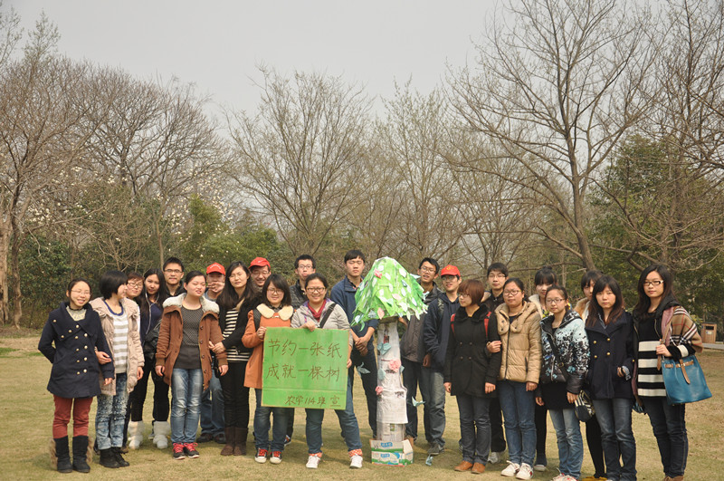 3月12日植树节这天,为了向更多的民众宣传环保知识,鼓励他们参与到环保行动中来,农学114班和番号鸽 生活部联合开展了“节约一张纸,成就一棵树”主题活动。