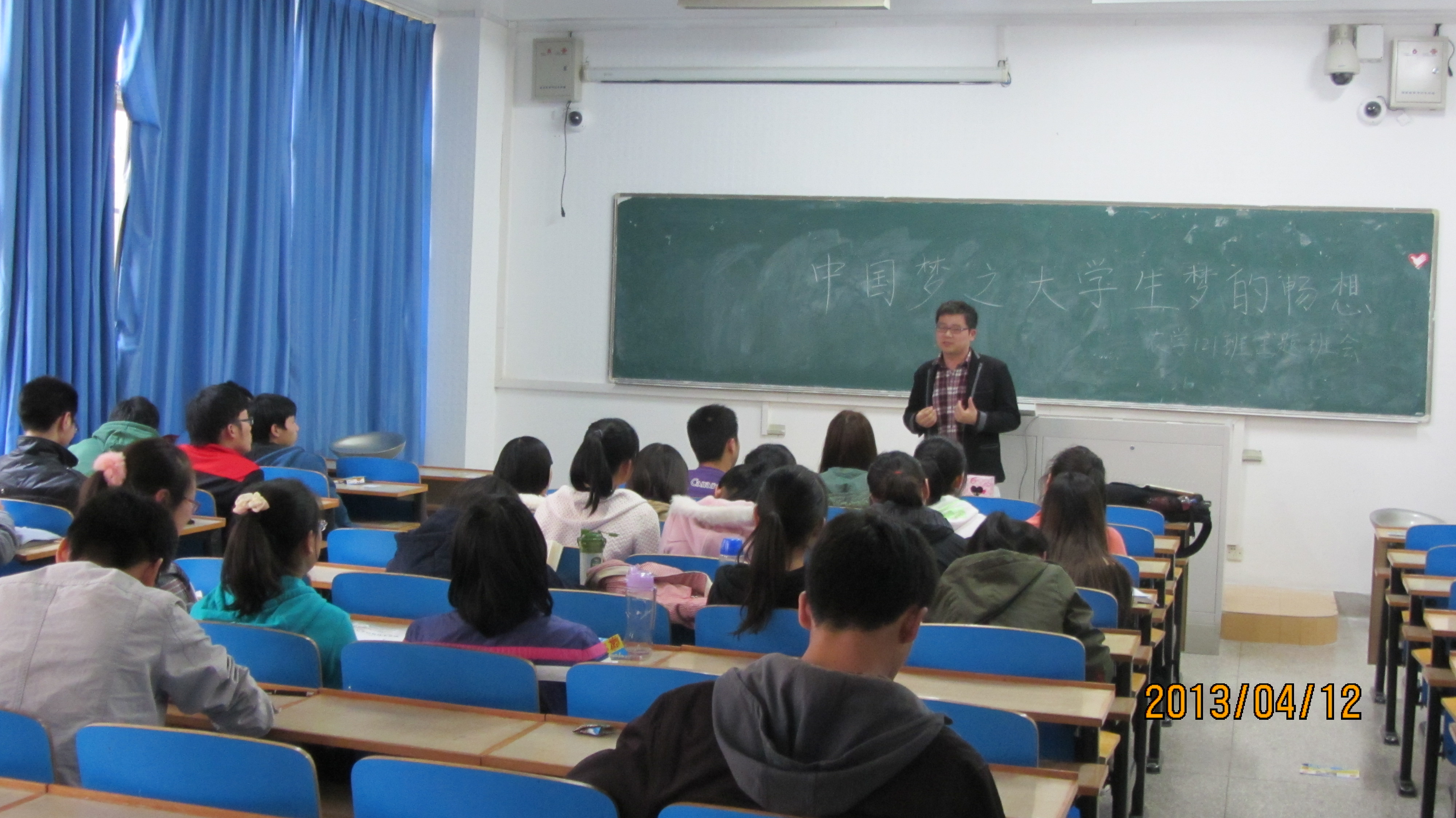 2013年4月12号下午,农学121班团支部在教学楼B102开展了 “中国梦·梦青春之大学生梦想的畅想”主题班会。