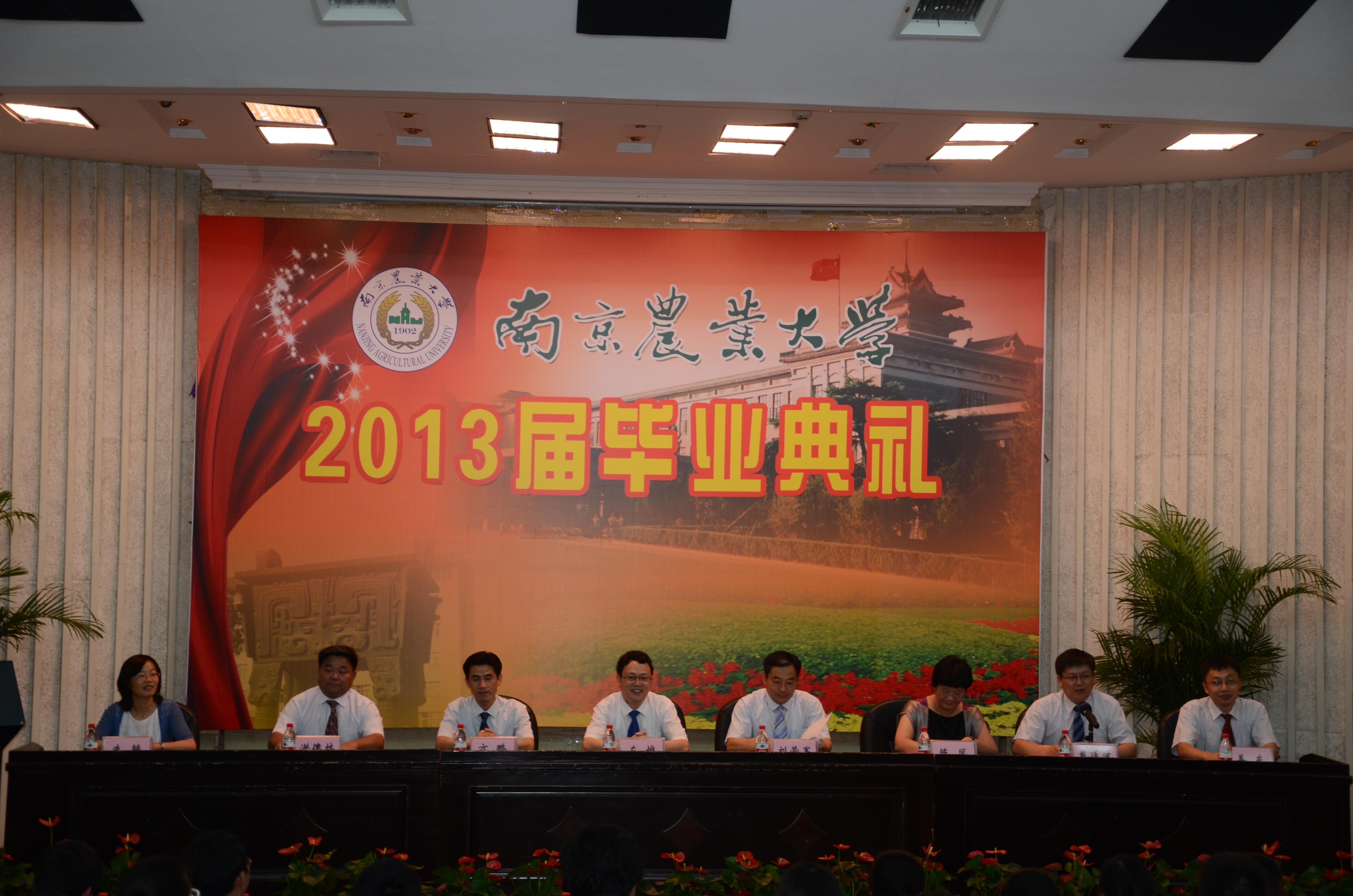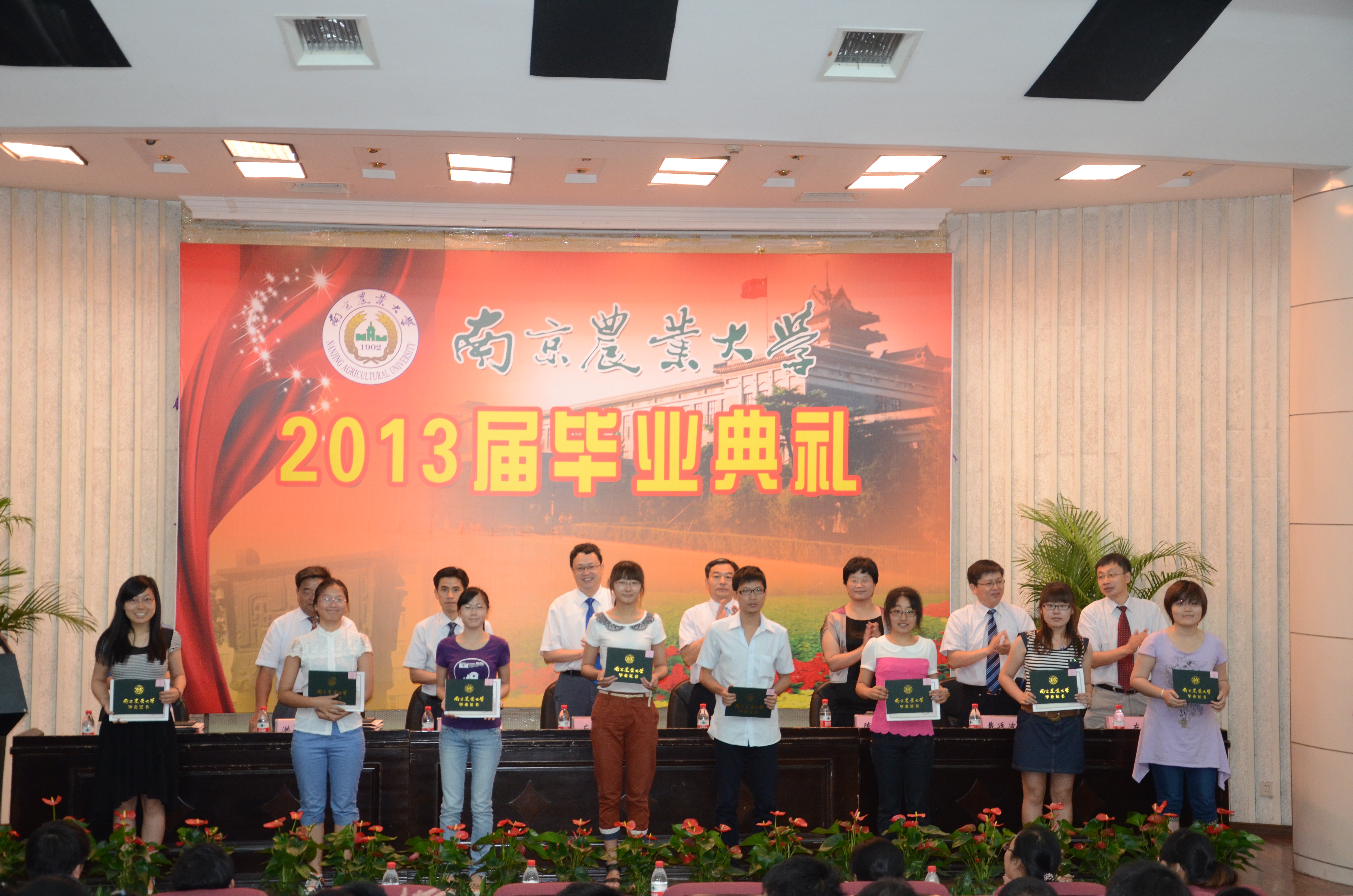 表彰完毕,在南农校歌的歌声中,各领导和来宾为番号鸽 2013届本科毕业生颁发了优秀证书和毕业证书。