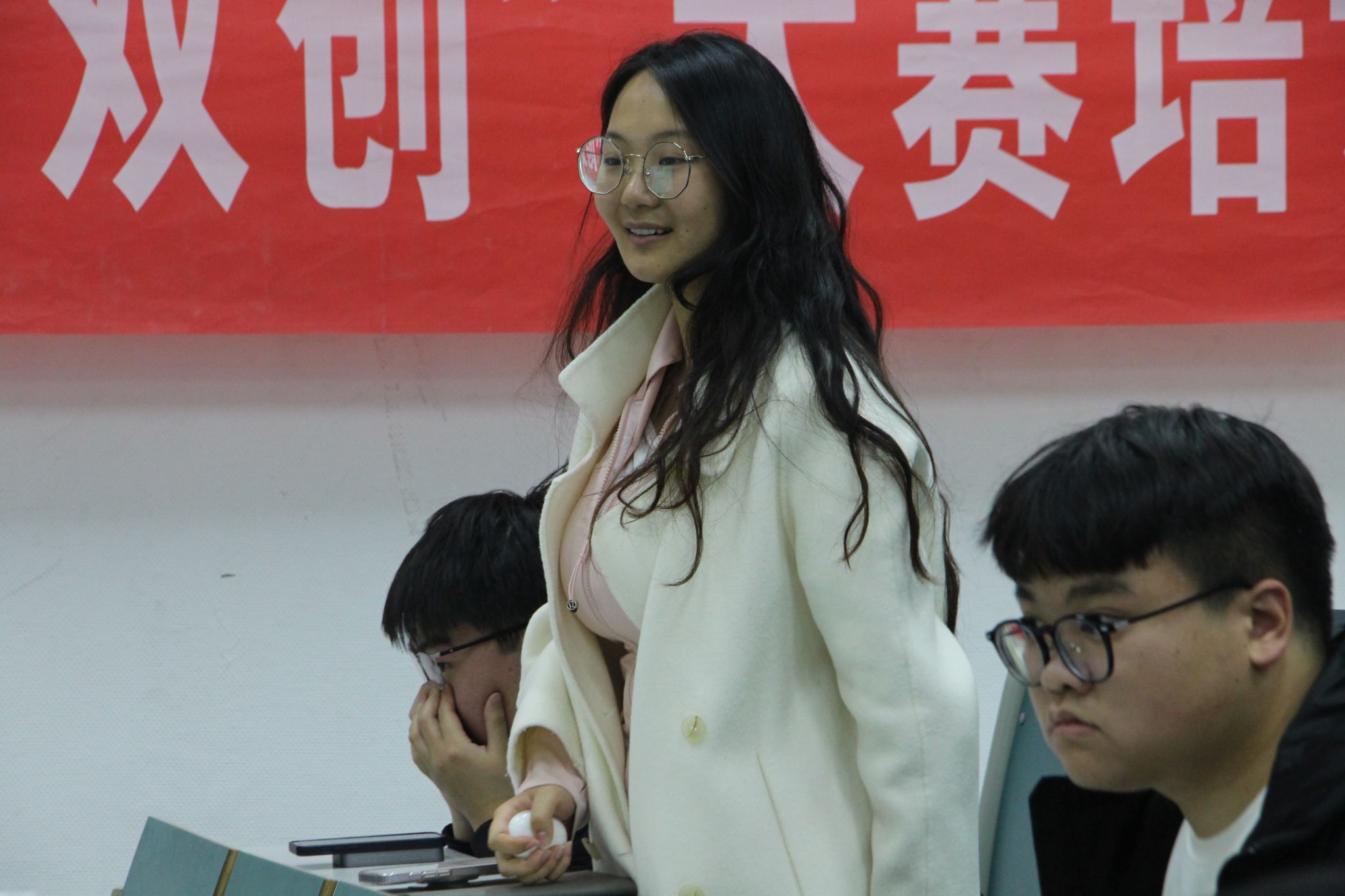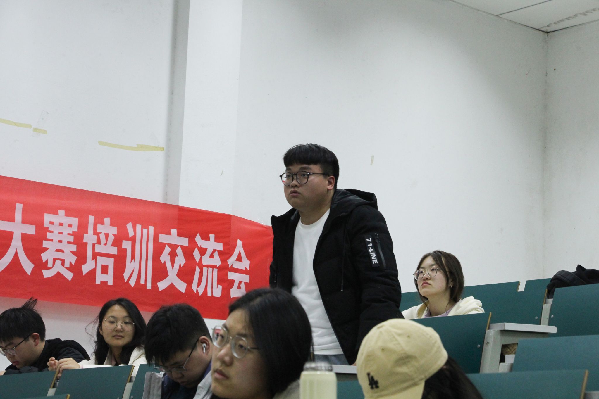 在提问答疑环节,大家积极发言,提出心中疑惑。倪军老师和两位分享同学对大家提出的“如何协调分内学习和比赛”“怎样进行策划案中具体的可行性分析”等问题作出了细致耐心的解答。