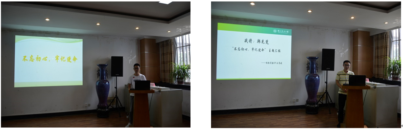 此次汇报是由张强、王誉晓、常梦洁三位同学围绕“不忘初心、牢记使命”这一主题展开,三位同学分别从自身理解出发,向大家展示了自己所理解的主题含义。
