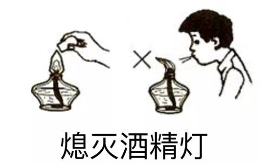7、熄灭酒精灯时,先用灯帽灭火,接着上提释放余热后再盖上,坚决不能用嘴吹熄。