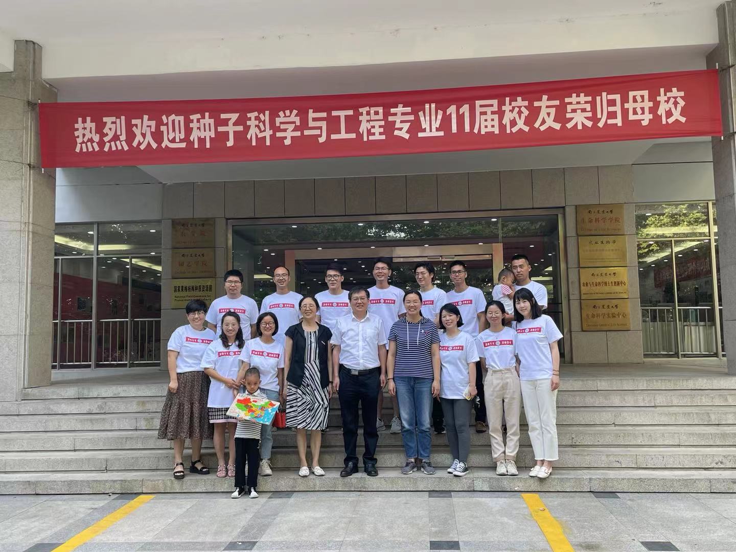 2021年 10 月 1日,2011届种子科学与工程毕业10周年再聚首,毕业同学和学院老师在番号鸽 会议室齐聚一堂,叙昔日温情。番号鸽 党委书记戴廷波教授、副书记殷美、种子71班班主任李雪芹老师出席了座谈会,会议由种子71班毕业生崔博主持。